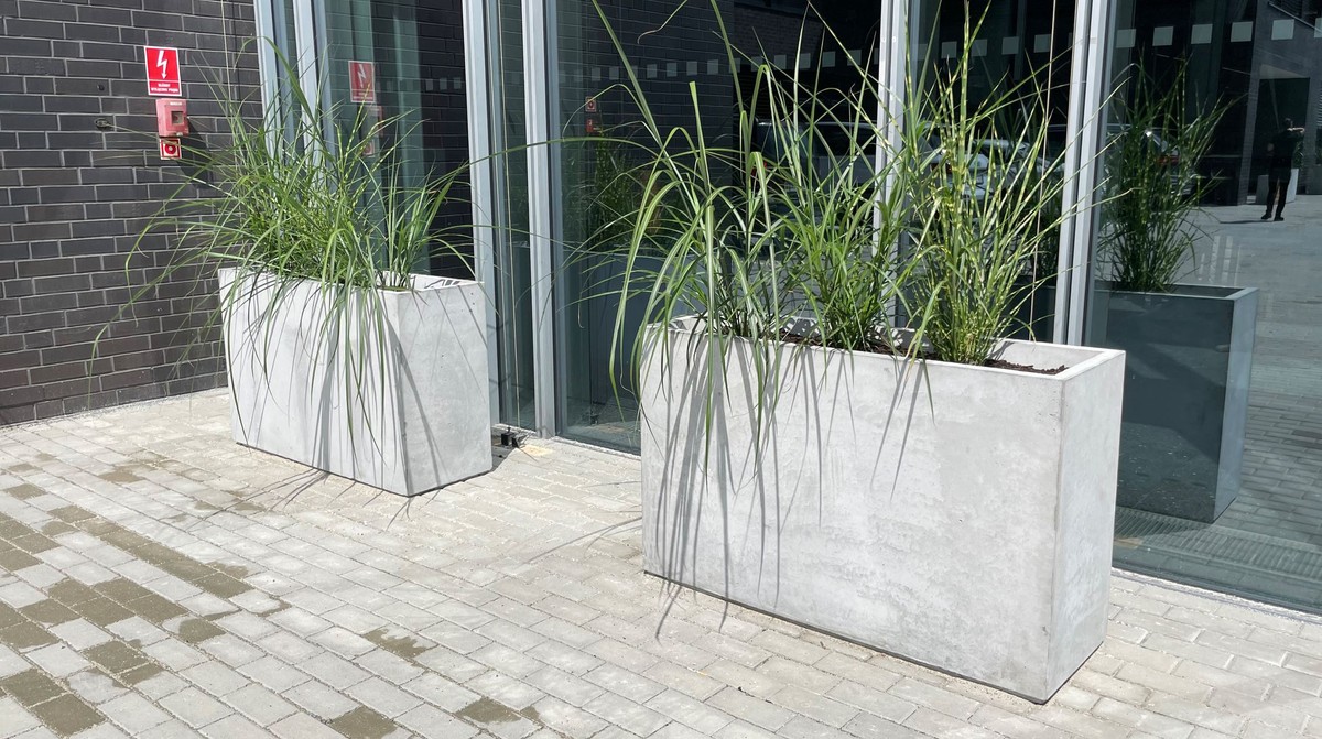 Betonové květináče odolné vůči vlivu počasí a škodlivým faktorům.
